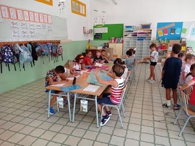 Tot preparat per gaudir d'un curs ple de novetats on tornarem a fer tallers, al pati ens barregem , entrem i sortim tots junts...
